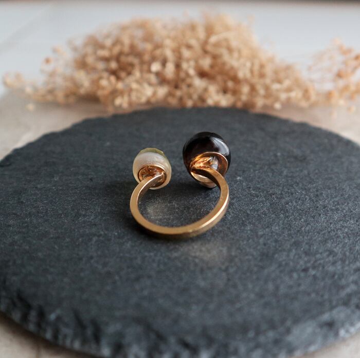 ブラウン×レモンカラーのコントラストが清涼感たっぷりで素敵なフォークリングに仕立てました。