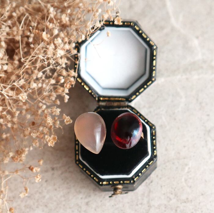 [グレーオニキス]1粒サイズ・・・約14×10mm [ガーネット]約12×10mm