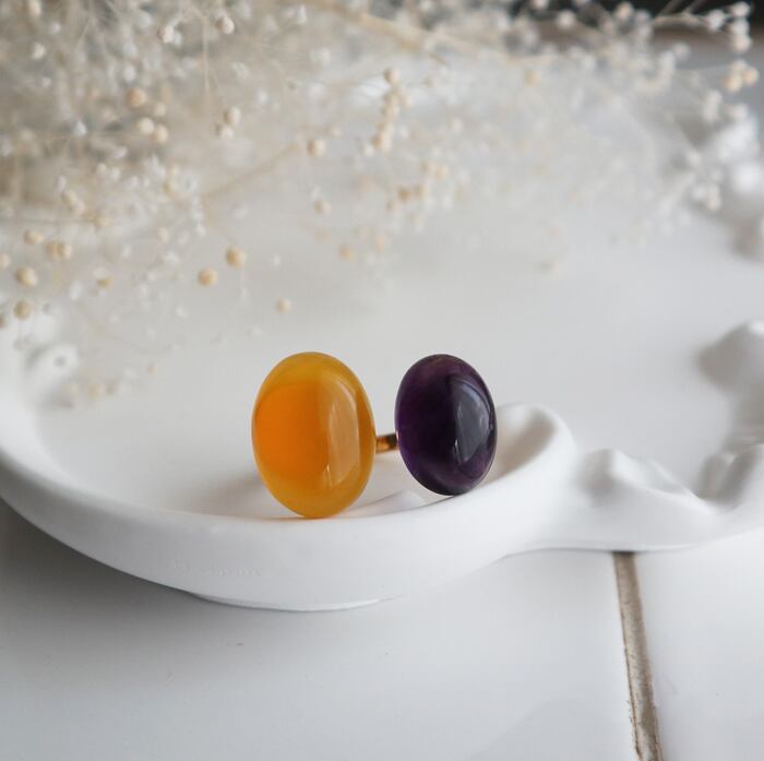 イエロー×パープルのコントラストが素敵なフォークリングに仕立てました。