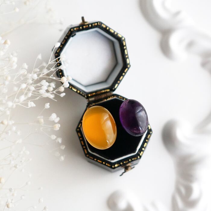 [イエローカルセドニー]1粒サイズ・・・約18×13mm [アメジスト]約14×10mm