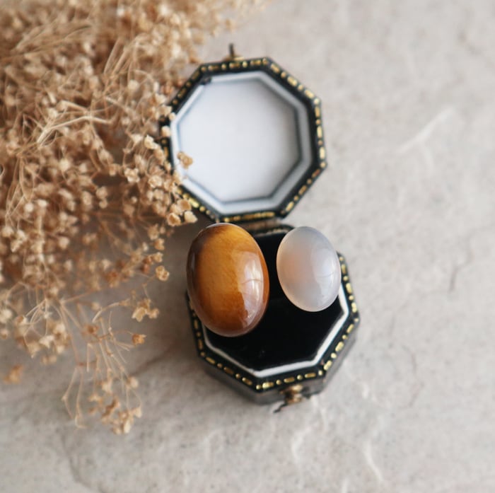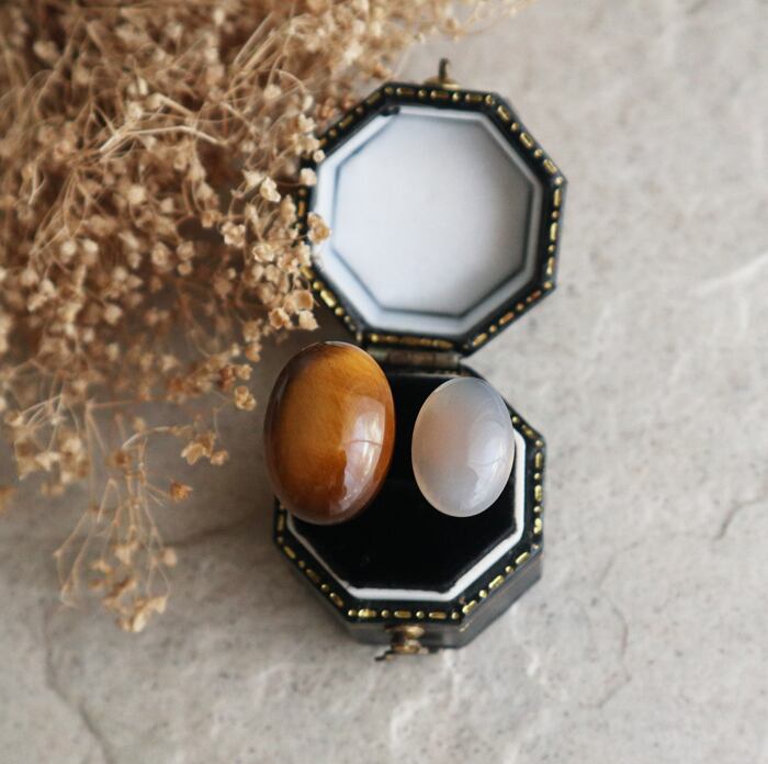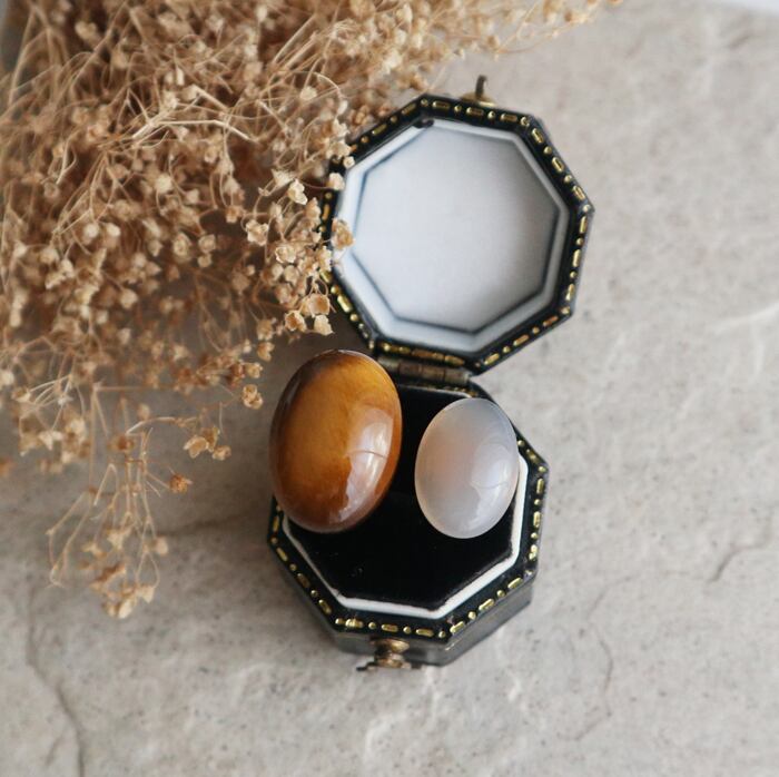 [イエロータイガーアイ]1粒サイズ・・・約18×13mm [グレーオニキス]約10×8mm