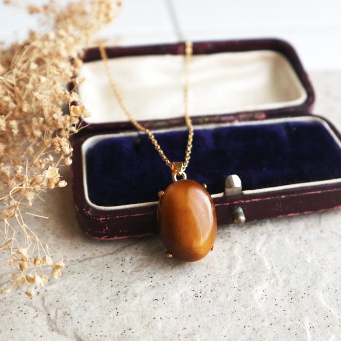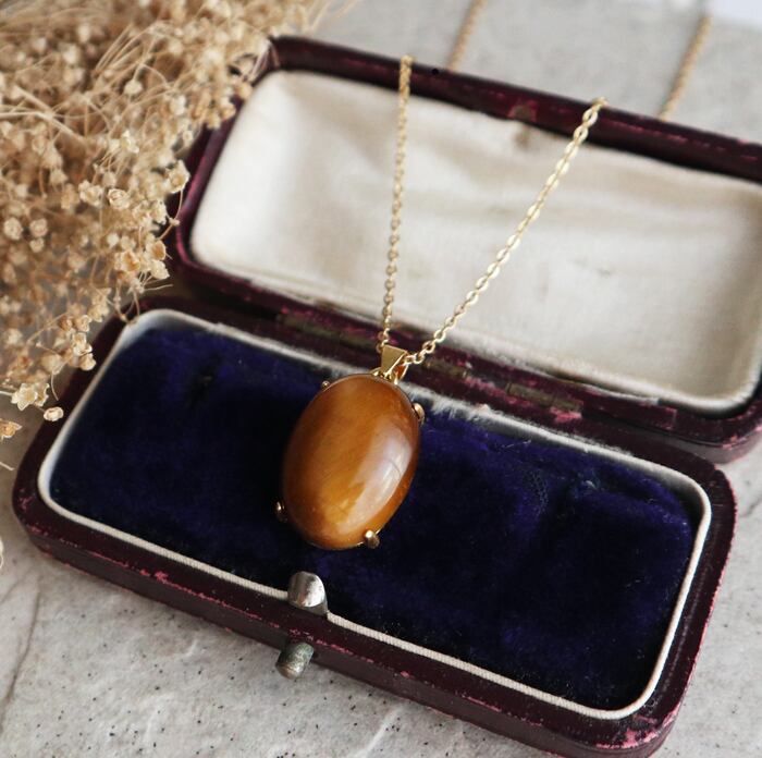 [チェーン]40cm [イエロータイガーアイ]1粒サイズ・・・石部分約18×13×5~8mm程度