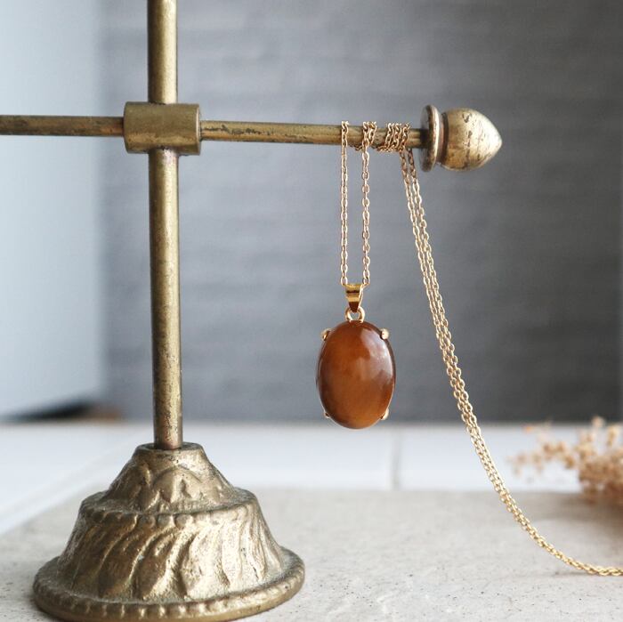 枠の中でうるうる・ぽってりとした質感がとても可愛らしく、ほろ苦い大人っぽさが魅力のキャラメル色が愛らしい一粒ネックレスです。
