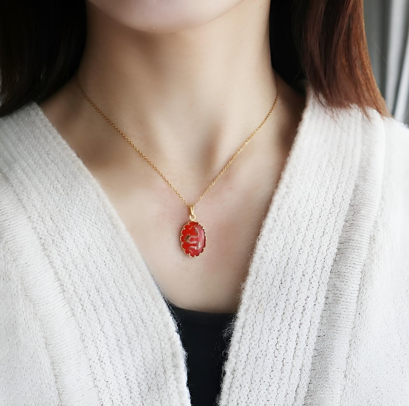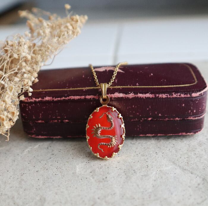 ●1950年代の西ドイツヴィンテージ製、昇り龍モチーフのインタリオをネックレスに仕立てました。
