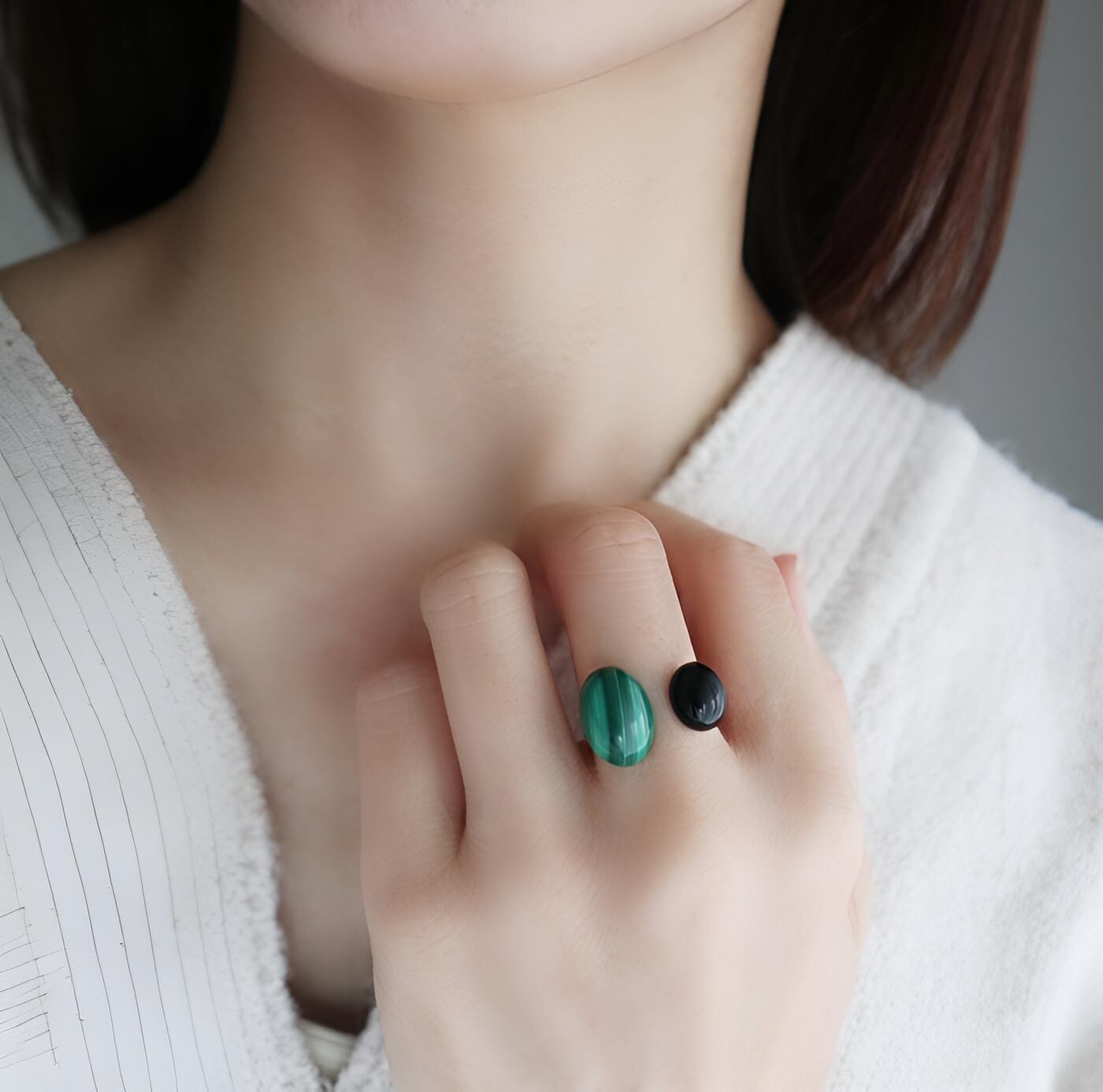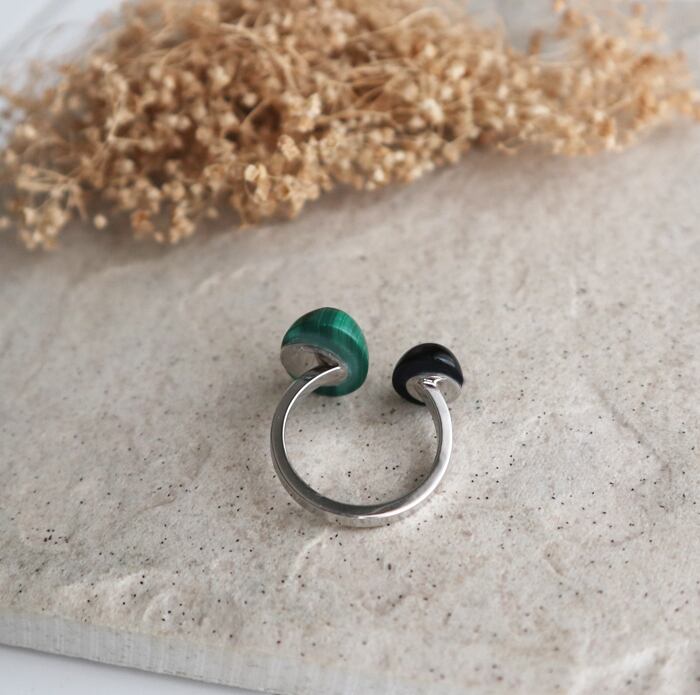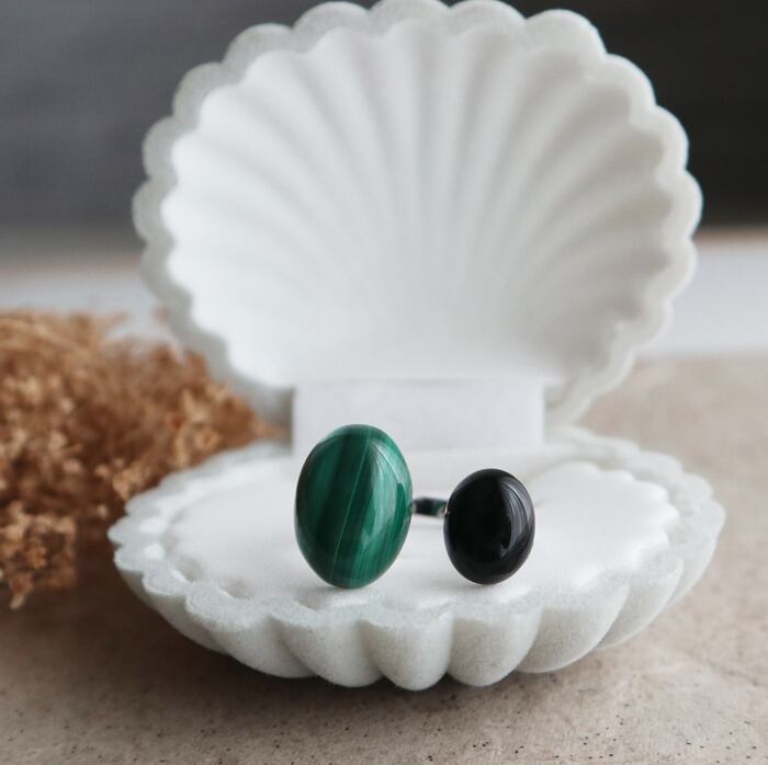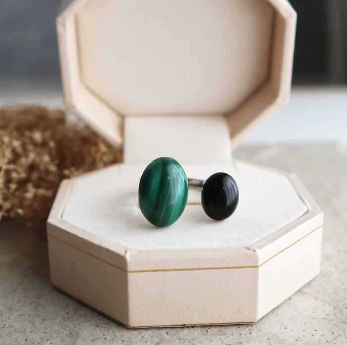#マラカイト#孔雀石#オニキス#天然石リング#天然石アクセサリー#フォークリング#フリーサイズリング#大人アクセサリー#グリーンアクセサリー#ブラックアクセサリー#サージカルステンレス#金属アレルギー対応#個性派リング#誕生日プレゼント#自分へのご褒美#シンプルコーデ#大人コーデ#ハンドメイドアクセサリー