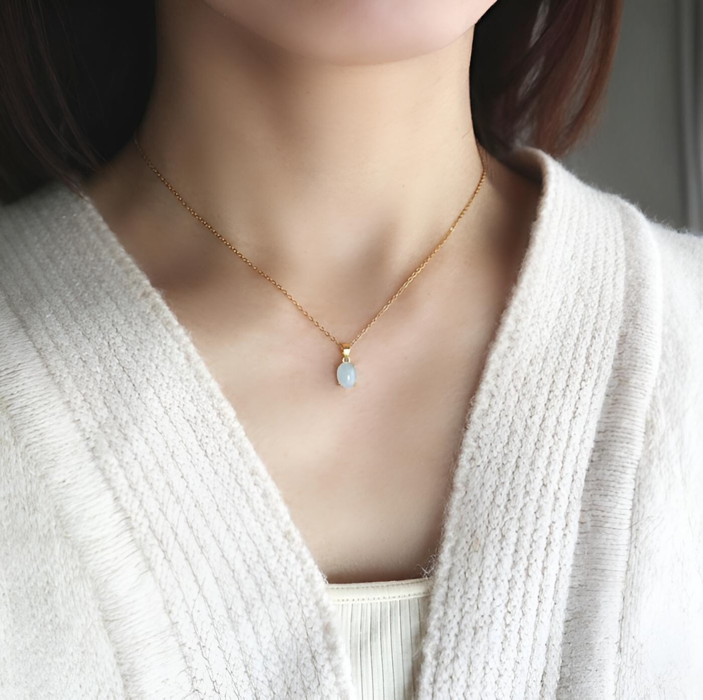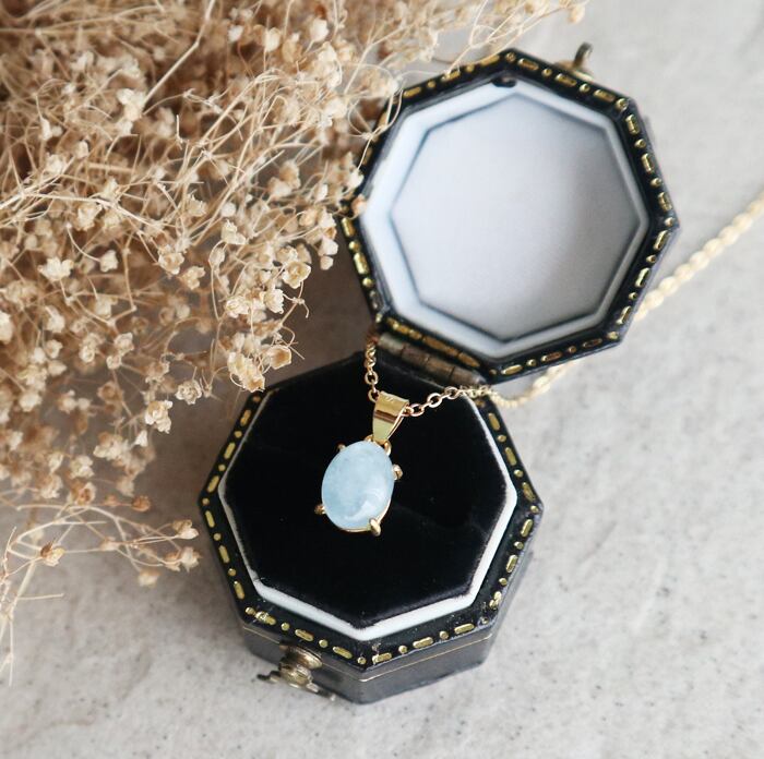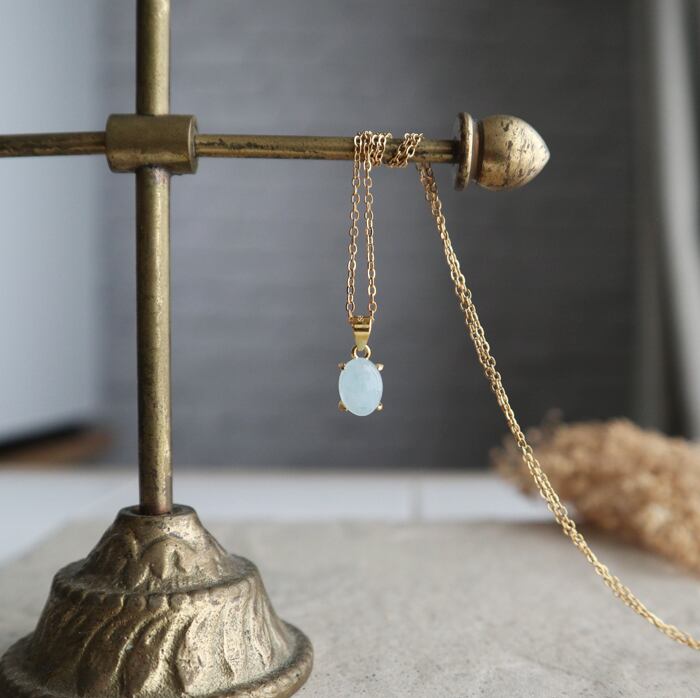 #アクアマリン#ナミビア産#3月誕生石#天然石ネックレス#オーバルネックレス#ミルキーブルー#サージカルステンレス#金属アレルギー対応#誕生日プレゼント#大人上品