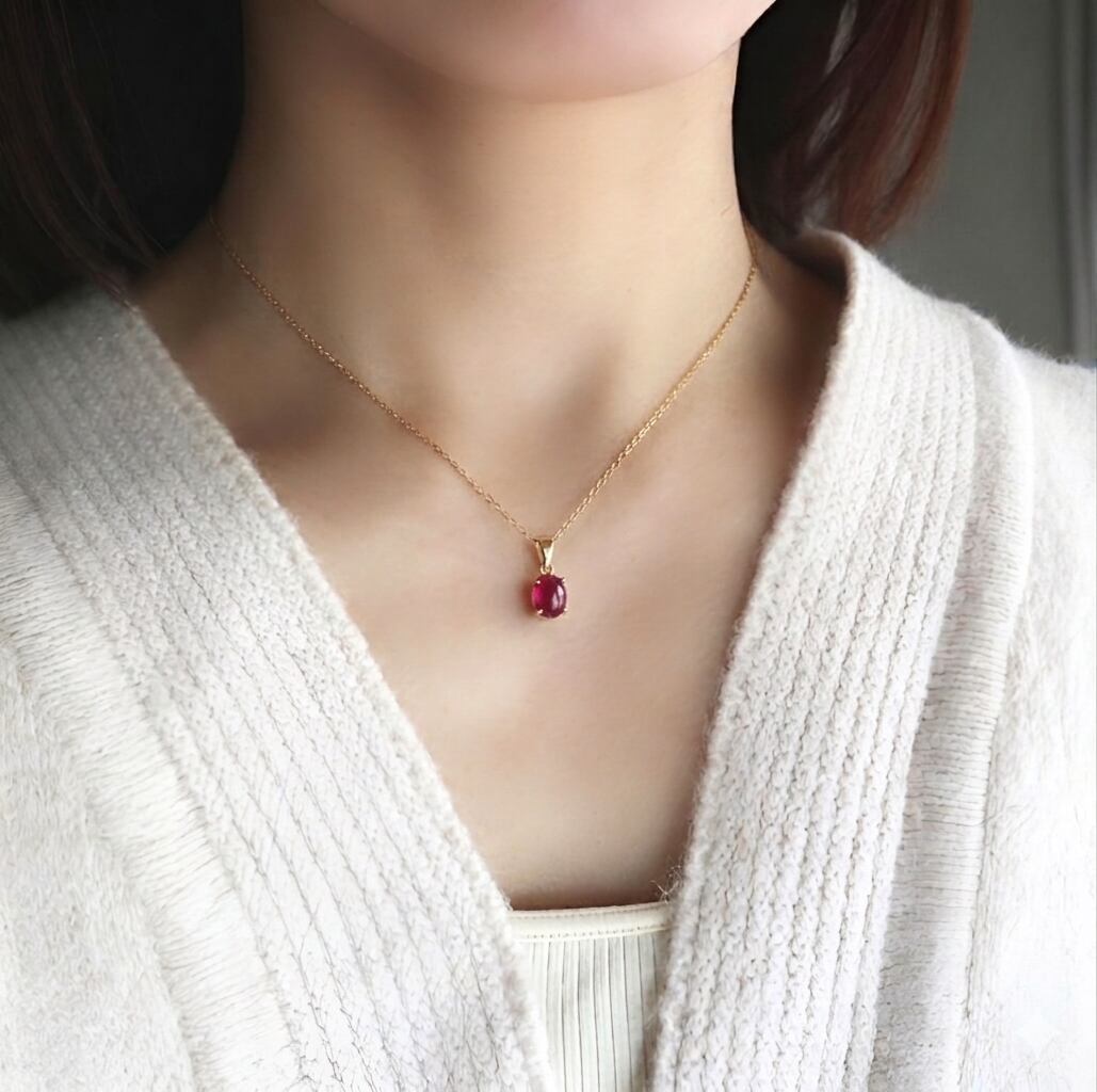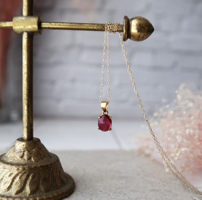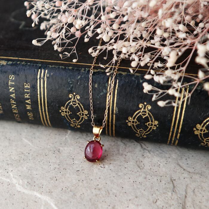 #ルビー#アフリカ産#7月誕生石#天然石ネックレス#オーバルネックレス#華奢ネックレス#サージカルステンレス#金属アレルギー対応#誕生日プレゼント#大人上品