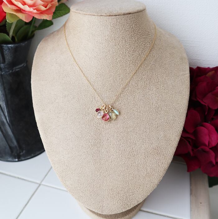 肌馴なじみの良い華奢なゴールドチェーンに合わせて5種類のチャームがついたネックレスに仕立てました。