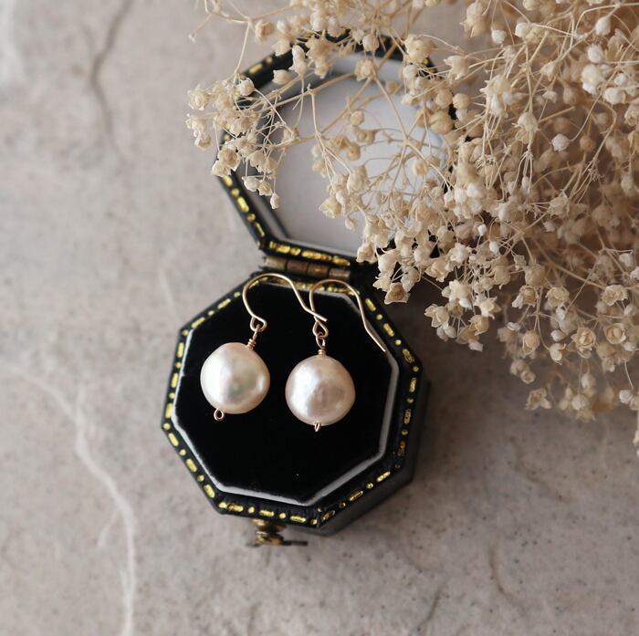 アコヤ真珠とはアコヤ貝から採取できる真珠のことで、僅かにバロック形状であったり、表面に一部小さな凹凸がありますが天然ならではの味わいがとても可愛らしいです!