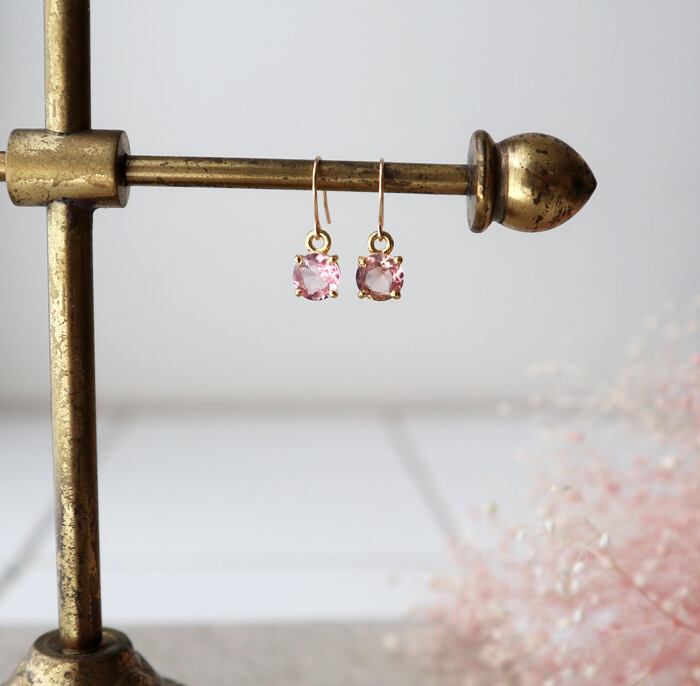 素 材:[天然石]ピンクトルマリン[金属部分]ピアスフック:K18イエローゴールド、石枠のみK18コーティング