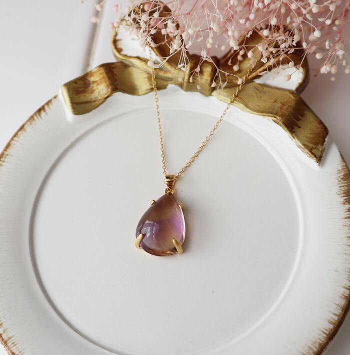 アメトリンは名前の通り、1つの石の中にアメジストとシトリンが混ざり合ったバイカラーのとても珍しい石です。
