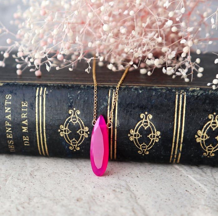 [天然石]フューシャピンクカルセドニー[金属部分]14k gold-filled