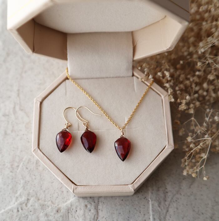 素 材:[天然石]ガーネット[金属部分]ピアスフック:K18イエローゴールド(ワイヤーのみ14kgf)