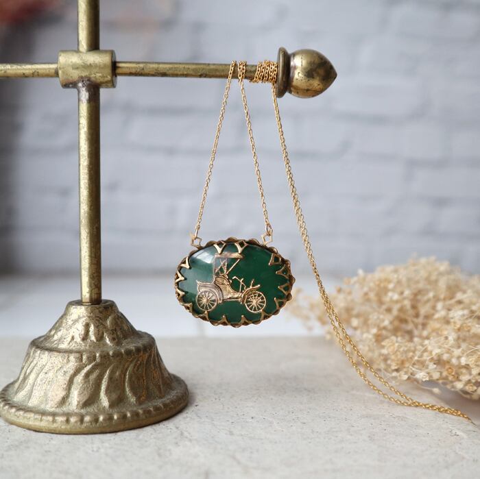 ●グリーンにゴールドの馬車が埋め込まれた西ドイツ製ヴィンテージカメオ。