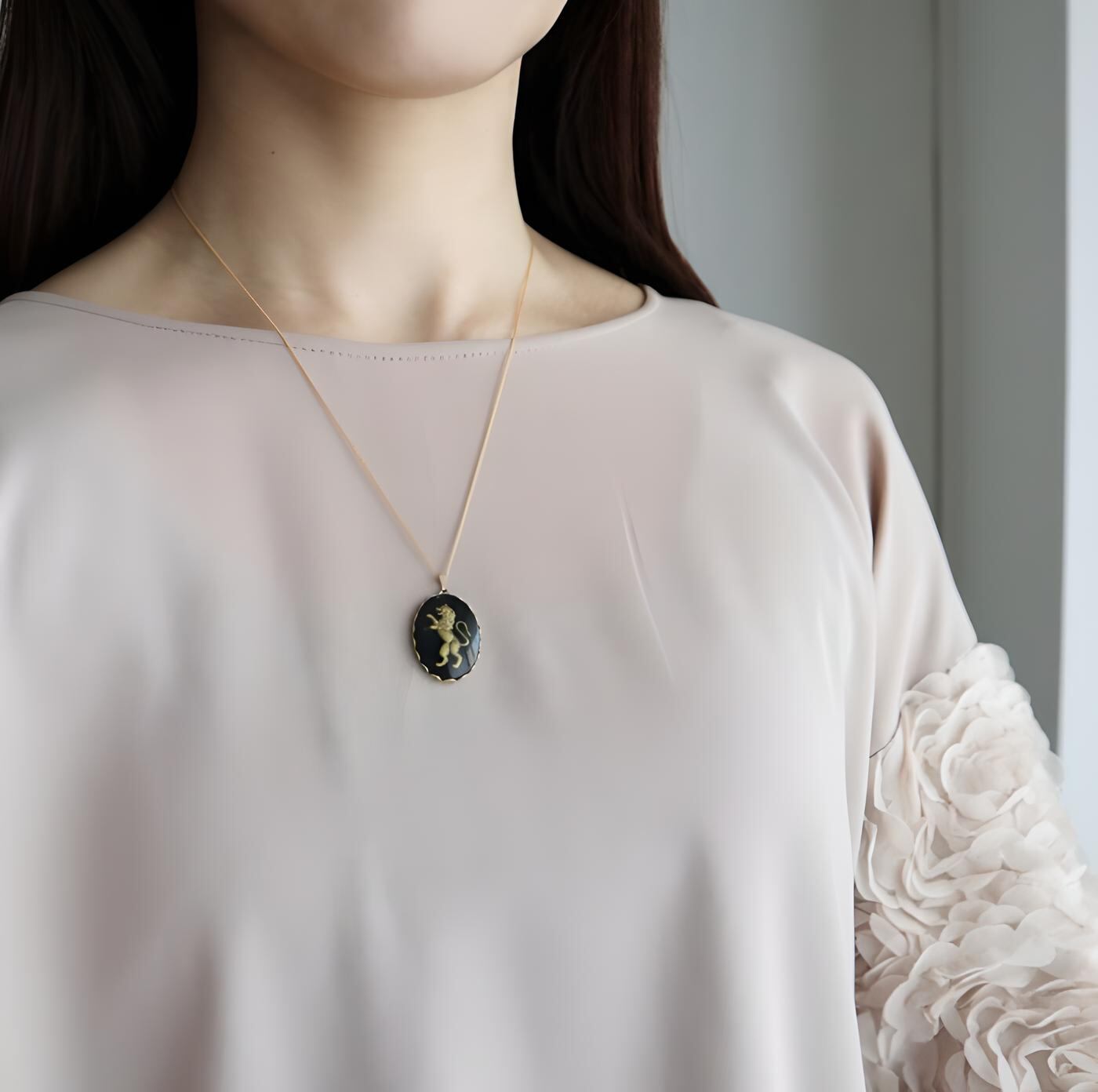 裏側に沈み彫りしたゴールドの立ち獅子にブラックカラーのペイントで大人っぽい印象です。