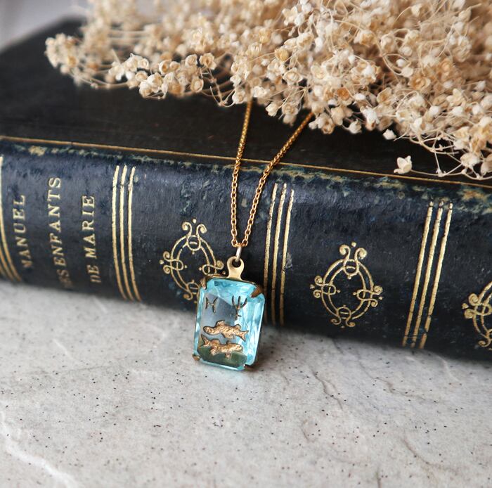 魚座モチーフ、ゴールドの装飾が施された神秘的なデザインが魅力です。