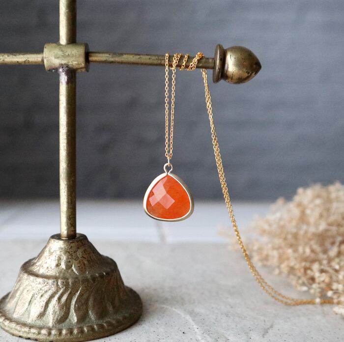 素 材: [天然石]オレンジジェード [金属部分]14k gold-filled、(枠留めのみ K16ゴールド(真鍮))