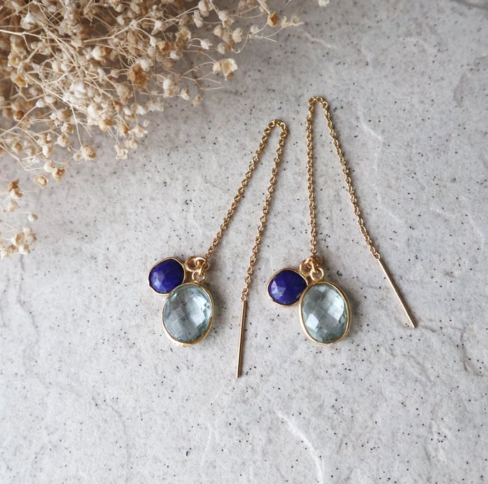 ラピスラズリは取り外し可能なチャームになっているので、シンプルにブルートパーズピアスとしても身に着けることができます。