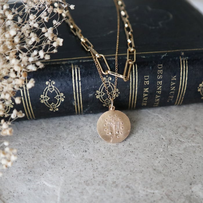 フランスのカトリック修道女、シスター・カタリナの前に聖母マリア様が現れ、マリア様が示された通りにメダイを作るようにというお告げの元、金細工師に作製してもらったのが始まり。