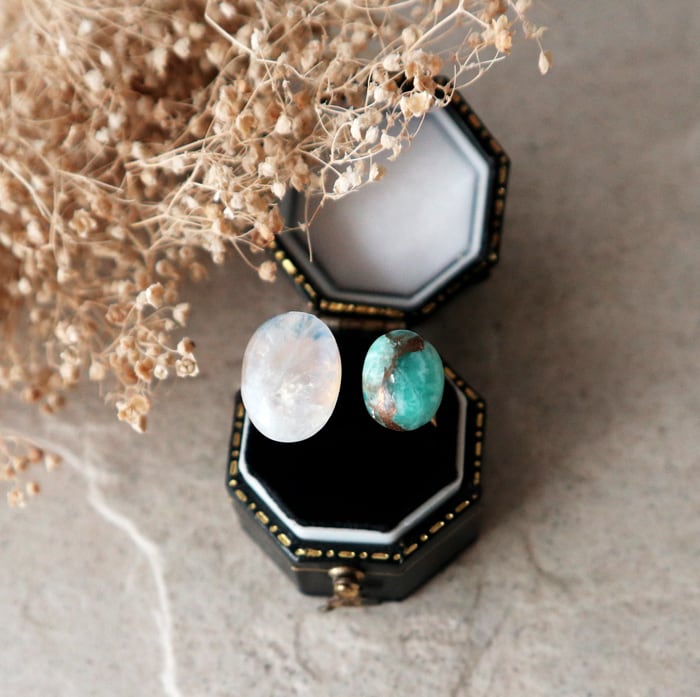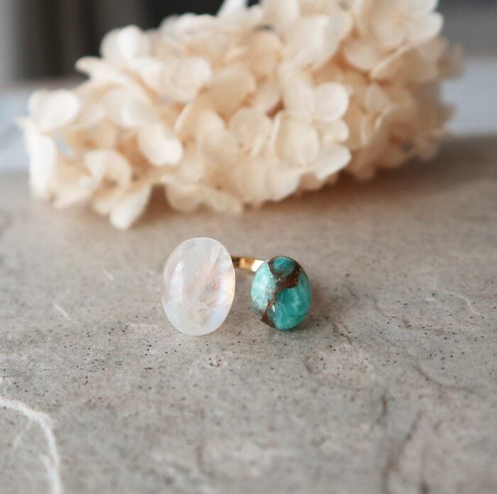 スカイブルー模様×ムーンストーンの優しく爽やかな雰囲気のコントラストが素敵です。